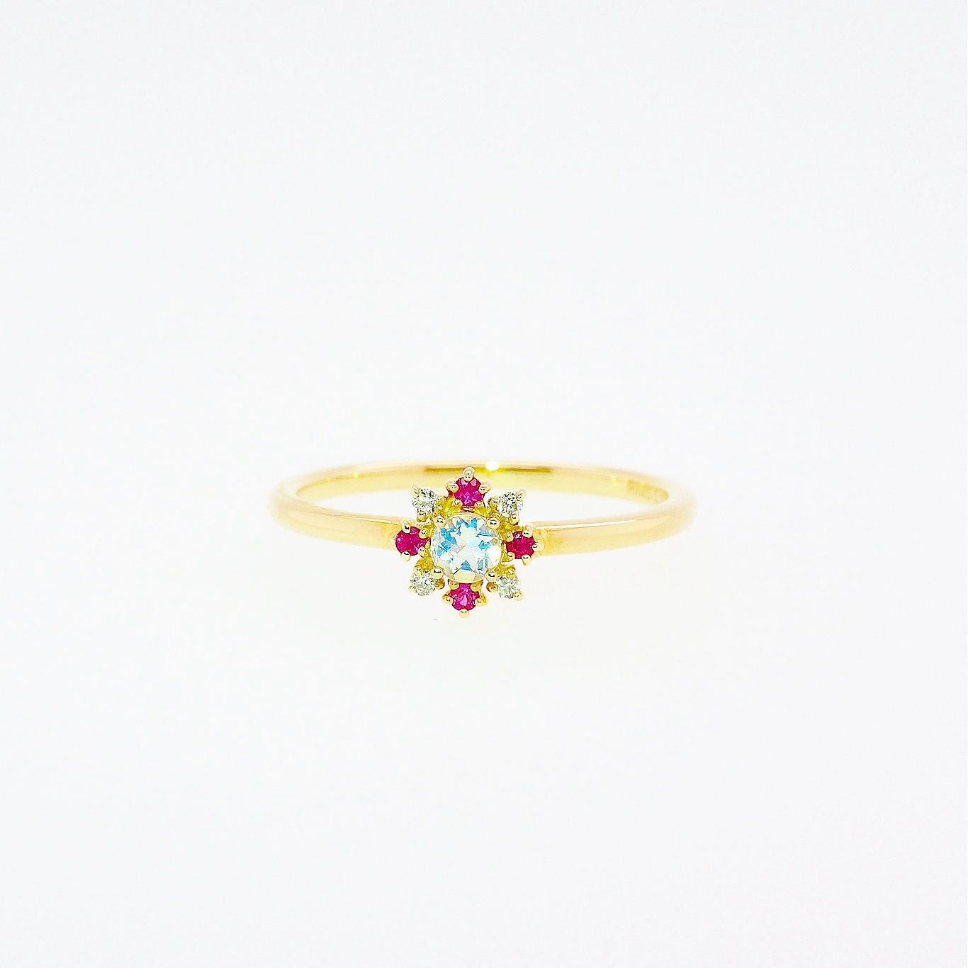 〈素材〉K10イエローゴールド 〈石〉レインボームーンストーン・ルビー・ダイヤモンド