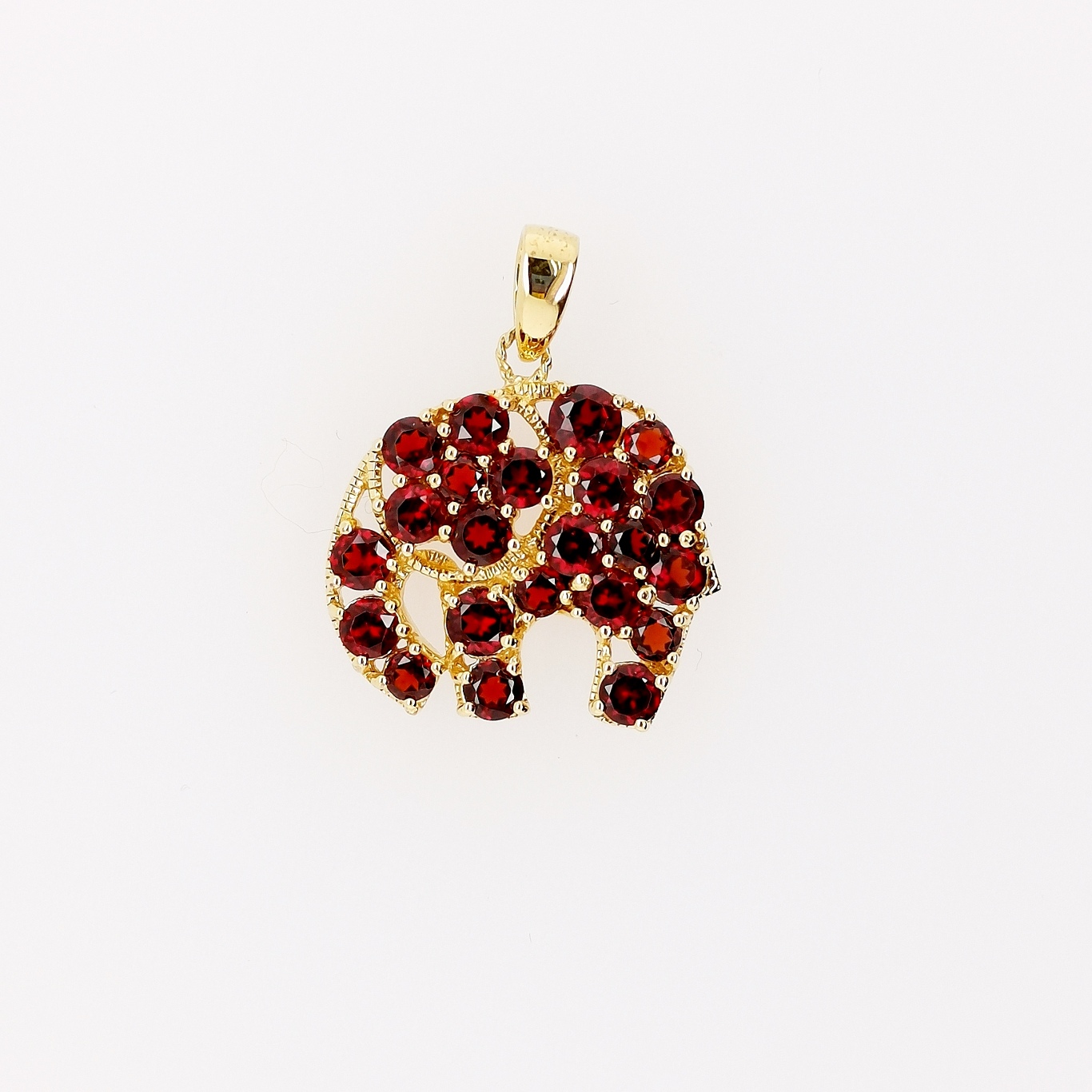 可愛い象のペンダントで全体にガーネットを敷き詰めて象の形の枠はミル打ちを施しました。耳の部分のガーネットでかたどったフラワーモチーフが可愛らしいアクセント。のんびりとした優しい印象のある象を可愛らしいペンダントにしました。