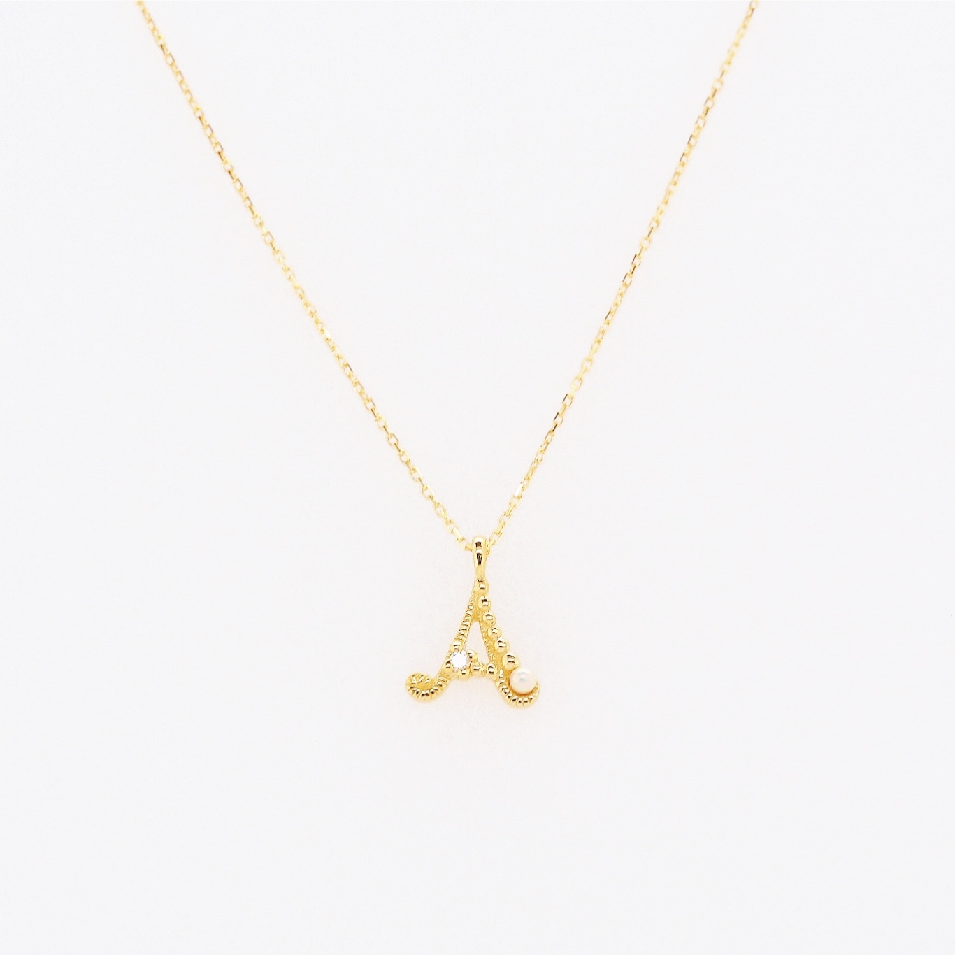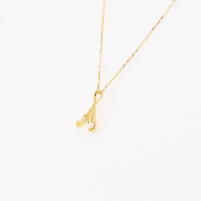 フリーハンドで書いたようなイニシャルがとっても可愛いペンダント。大切な人への贈り物にも人気です!アクセントにダイヤモンドとシードパールを留めて、仕上げはアンティークらしいミル打ちと小さな玉飾りで飾りました。イニシャルはすべてのアルファベットのご用意がありますのでご希望の際はお問合せください。